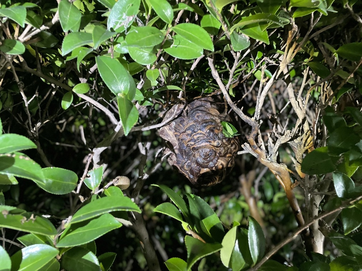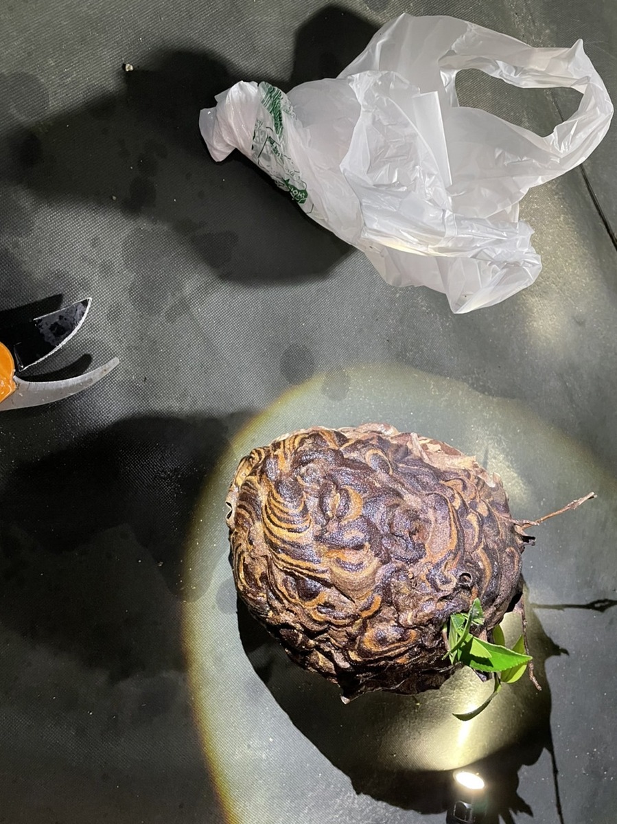 お寺の境内に、スズメバチの巣🐝がありましたので、駆除に行ってきました。