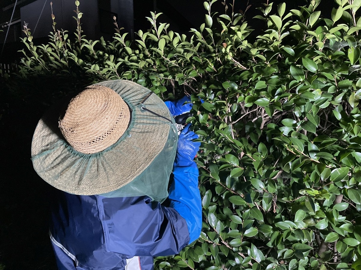 ちなみに、蜂の巣を撤去していますのは、弊社の社長です。