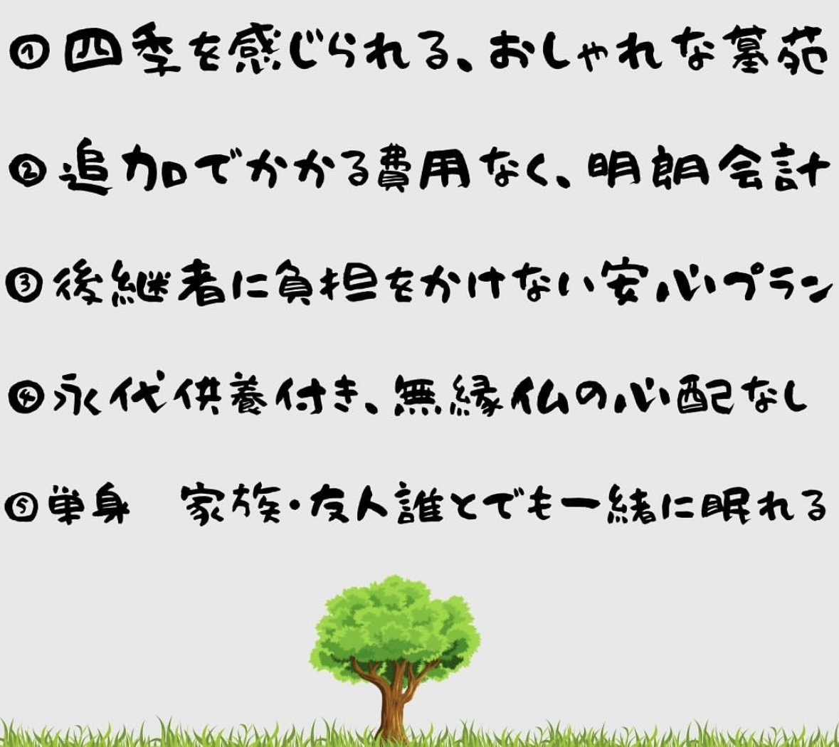 ひだまりの杜の樹木葬は、すべてのプランで「永代供養」が付いており、参拝者がいなくなっても無縁墓になる心配がありません。お寺が永代にわたり供養を続けてくれるため、家族が安心して故人を見送ることができます 。