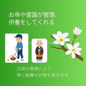 一般的なお墓より費用が抑えられ、管理料も不要な場合が多いです。
