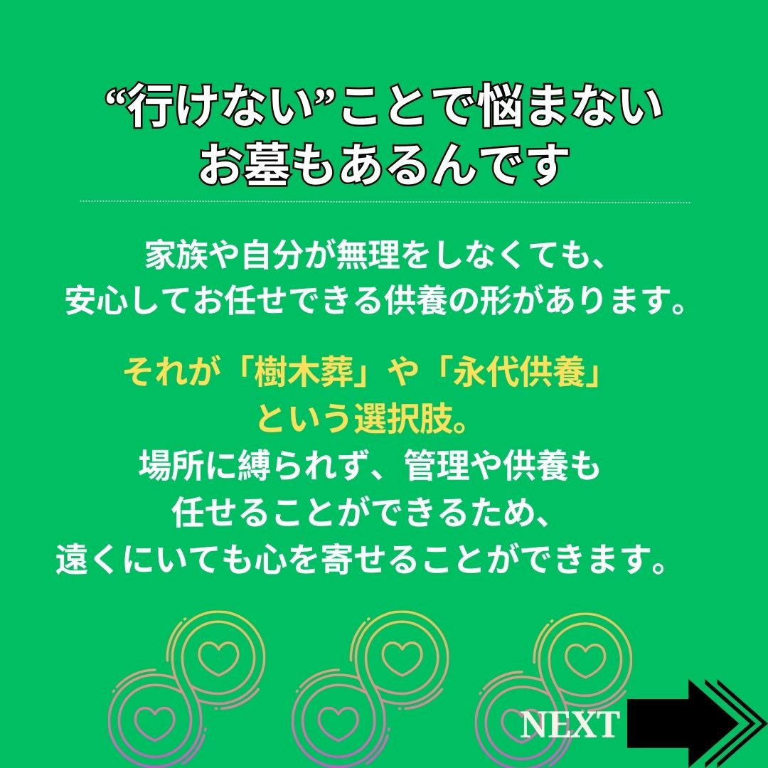 さらに、ひだまりの杜ではお参りがしやすい環境を整えており、管理の行き届いた霊園として多くの方に選ばれています。もし「お墓が遠くて足を運べない」という不安をお持ちなら、樹木葬という新しい供養の形が大きな助けになるでしょう。